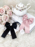 長く垂らしたリボンがスタイリングに華やかなニュアンスをプラスします。