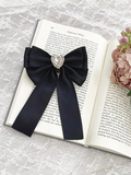 ハートビジューがきらめく、ボリュームのあるリボンが可愛いブローチです。