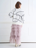無地のボトムスと合わせてトップスを主役にしたコーディネートがおすすめです!モノトーンでまとめ、大人っぽい着こなしの中にラインデザインを際立たせてアクセントにするスタイリングも◎