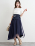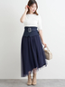 アシンメトリーなシルエットとチュール使いが華やかなスカート
