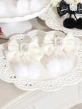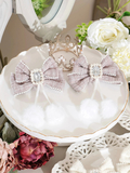 ツイードリボンにビジューやポンポンをトッピングしたツインクリップ。