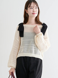華やかなショルダーリボンが目を惹く着映えニットトップス。