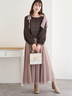 夏に着ていたキャミワンピやノースリワンピの上に重ねれば一気に秋らしい印象に。