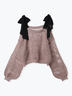 ・肩周りの華奢見せも叶えながら小顔効果まで発揮するショルダーリボンデザイン。