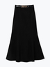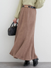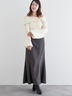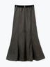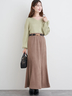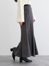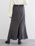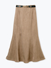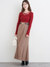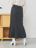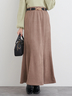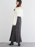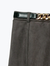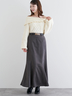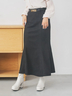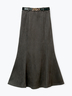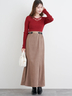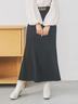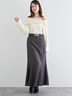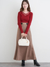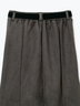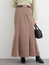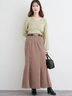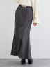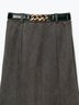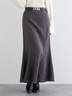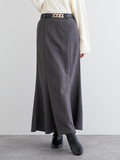 上品な印象を与えるフレアシルエットに、チェーン×フェイクレザーベルトがアクセントになる大人見えスカート。