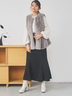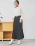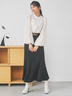 すっきりとしたトップスをタックインすれば、美しいAラインが際立ちスタイルアップ効果も◎