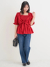 ペプラムシルエットのトップスやオーバーサイズのシャツ合わせもメリハリが出るので◎!