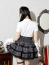 チョーカーのようなネックと胸元のクロスラインもアクセントをプラス。