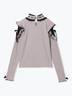 首元はプチハイネックになっているため、スタイリングに上品な印象を与えます。