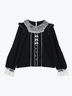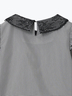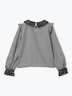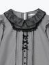 襟や袖口にはレースを施しており、華やかな印象をプラスします。