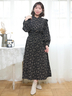 ・フリルデザインとレトロ感のある花柄素材がクラシカルな装いを演出してくれる1着。
