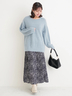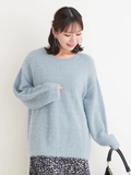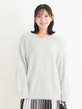 キラキラと輝くラメ糸入りのフェザーニット素材。