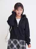ふわふわのファーがフェミニン度を上げてくれるキレイ見えニットパーカー