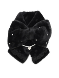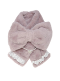 存在感たっぷりなリボンにキラキラのビジューが施されたマフラー。