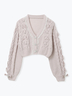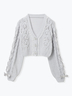フロントのビジュー調ボタンが煌びやかなアクセントに。