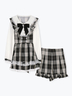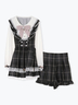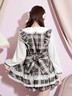 ヨークデザインにチェック柄を組み合わせ、甘さの中に上品さを感じる一着。