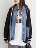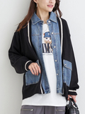 デニム切替ニットカーディガン