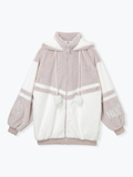 フードには愛らしい耳のデザインをあしらい、遊び心あるスタイルを演出。