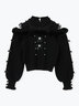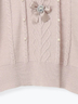 フロントのリボンディテールとビジュー調モチーフが、コーデに上品なきらめきを添えるポイント。