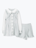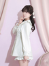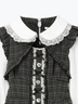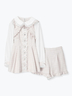 大きめ襟とフリルディテールが愛らしく、袖のレース切り替えがほどよい甘さを添えてくれます。