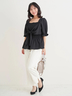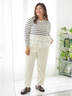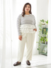 ペプラムシルエットやチュニック丈のトップスと合わせれば、体系カバーも叶うメリハリのあるスタイリングに決まります♪