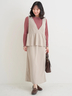寒い時期はハイネックトップスを合わせたり、カーディガンやジャケットなどの羽織りを合わせて温度調整するのがおすすめです。