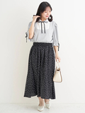 スカート部分は落ち感のあるやわらかなドット柄素材