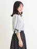・リボン付きブラウスにドット柄スカートを合わせたような着映えするデザイン!襟のリボンは取り外せるのでアレンジも可能◎