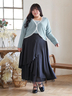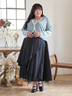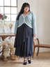シンプルなトップスと合わせても華やかなスタイリングに。