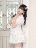 繊細なローズプリントが華やかさを演出するセットアップ。